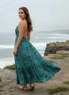 HI-LOW, DEEP BACK, LONG DRESS WITH DRAWSTRING UNDERBUST -BLUE GREEN
