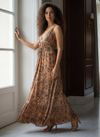 Rosie Peach Brown Mix Paisley-Print Maxi Dress