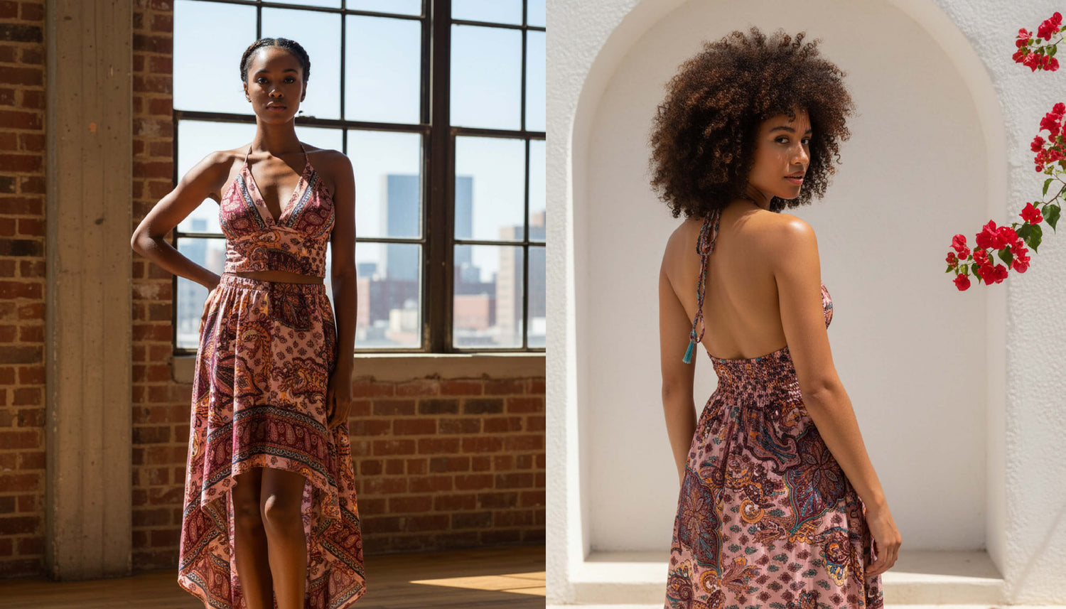 Our dresses are crafted from lightweight, breathable fabrics such as cotton, rayon, and viscose — perfect for warm weather and everyday comfort.