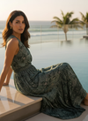 Hi-Lo Expandable Under-Bust Ribbed Paisley Dress